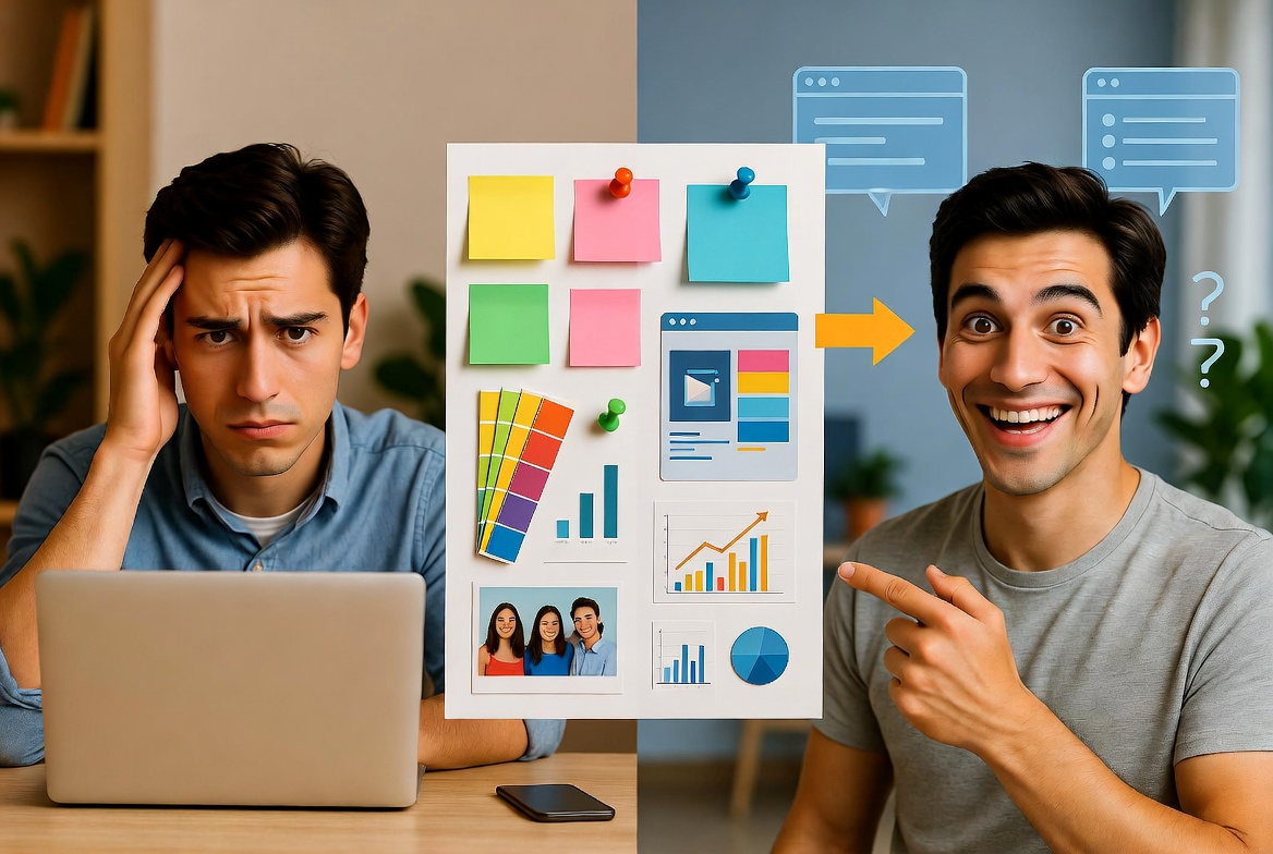 Hoy en día el mercadeo digital, donde la competencia es feroz y los usuarios deciden en segundos si se quedan o se van, una buena experiencia de usuario no es un “lujo”, es una necesidad. Y el moodboard te ayuda a construir esa experiencia desde el primer momento.