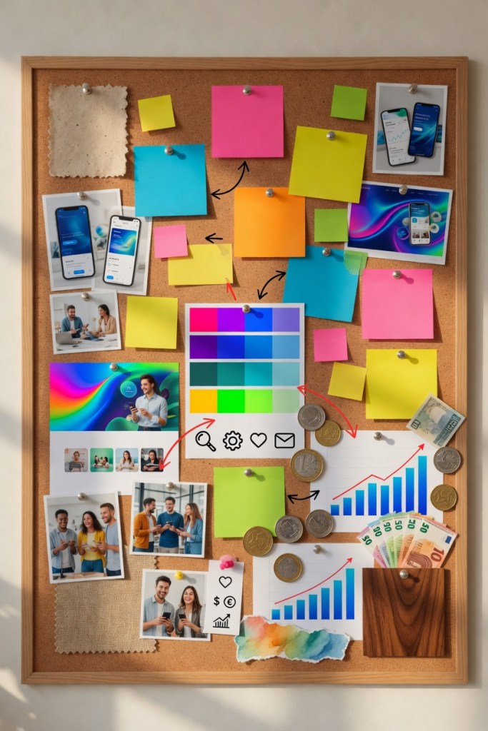 No es un diseño final. Es un collage visual que captura la esencia emocional y estética de lo que quieres lograr. Y cuando estamos hablando de UI/UX, ese tablero se convierte en tu brújula.